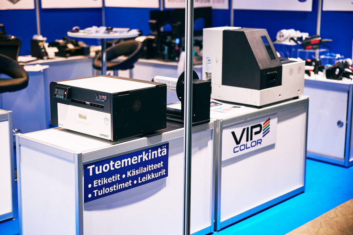 Kari Nevalainen Oy:n osastolle on tulossa tuttuja ja luotettavia värietikettitulostimia kuten OKI, VipColor ja Epson. Erilaisia lämpösiirtotulostimista löytyy mm. Godexilta, Zepralta ja SATOlta. Settiin kuuluvat myös etikettileikkurit.