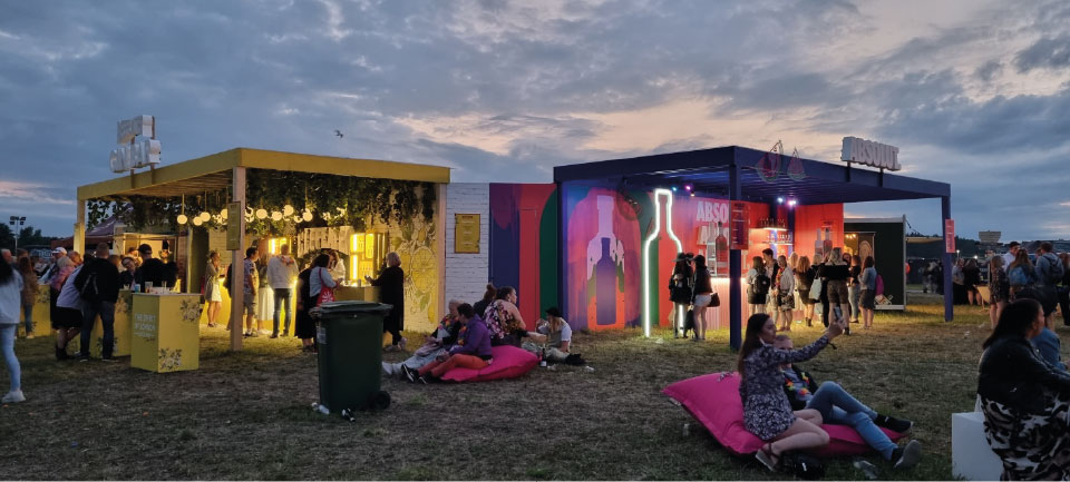 Beefeaterin ja Absolutin kojut festivaaleilla.