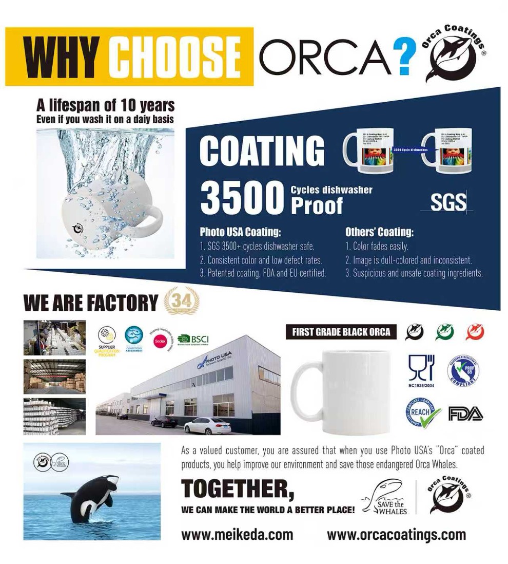 Photo USA has led the sublimation industry for 34 years, underpinned by exceptional product quality, outstanding customer service, competitive pricing, and innovative ideas. Affectionately known as the “Mug King” within our industry, our success is built on a loyal global customer base and the dedication of our teams in both China and the U.S., as well as the strength of our brand, Orca Coatings.